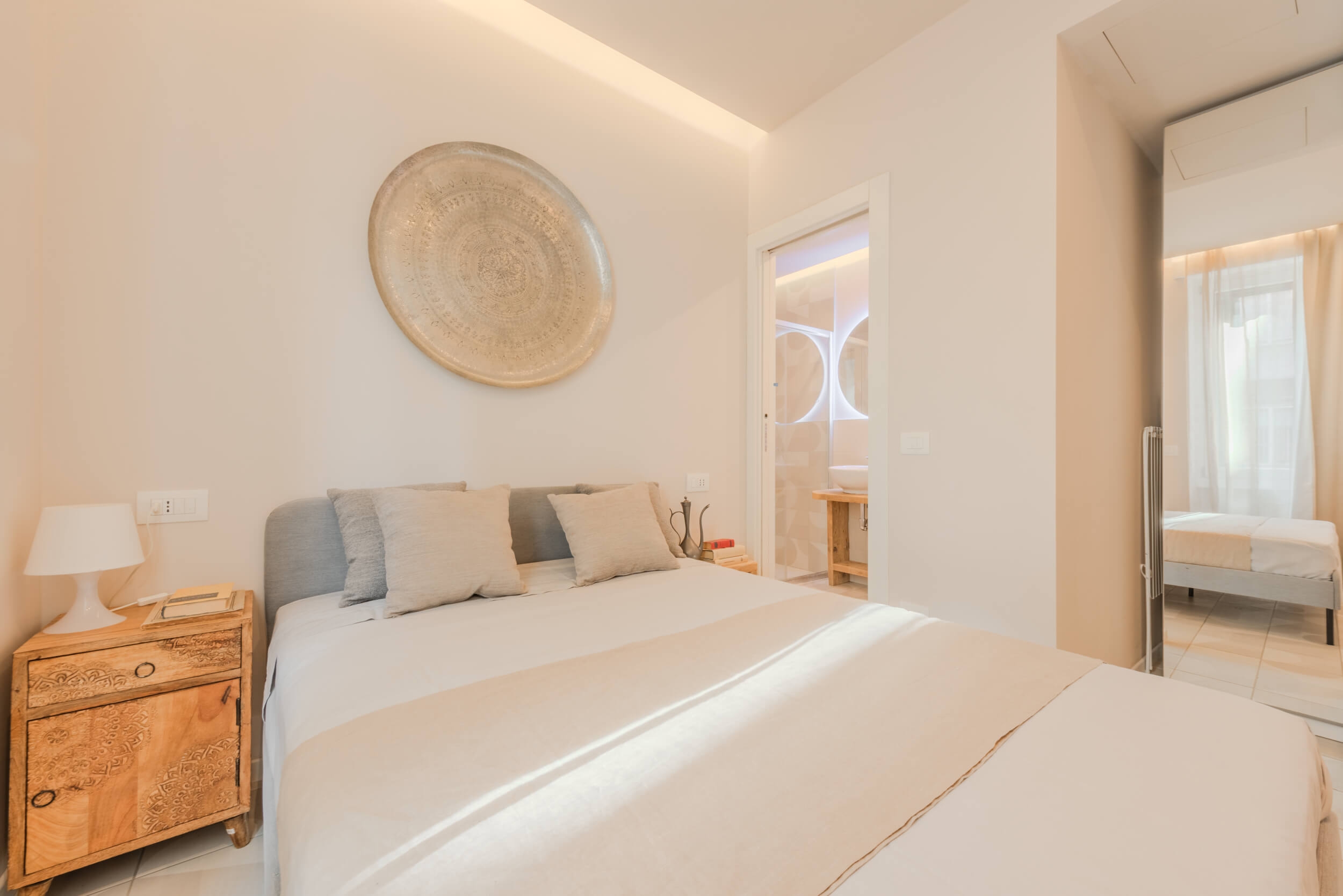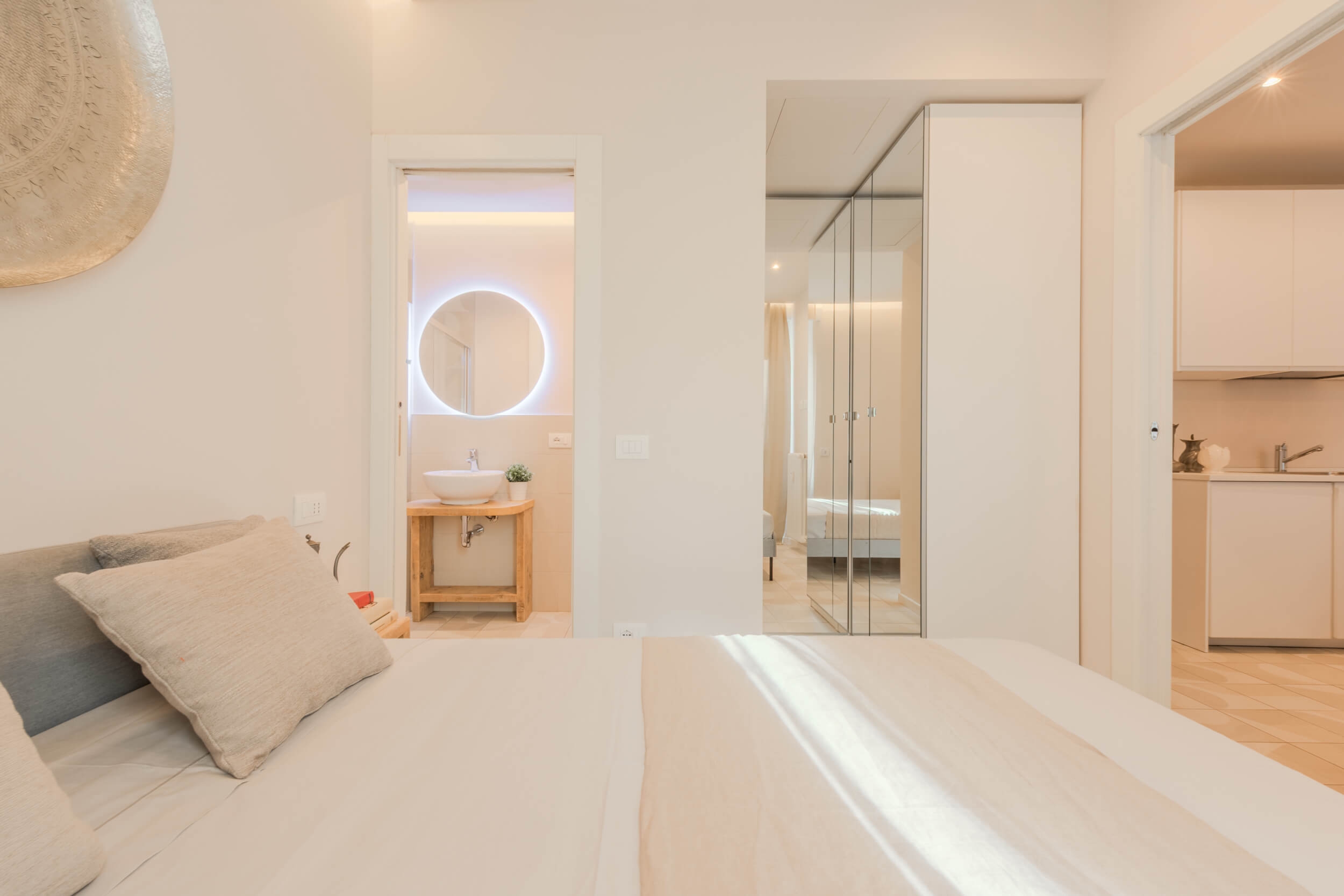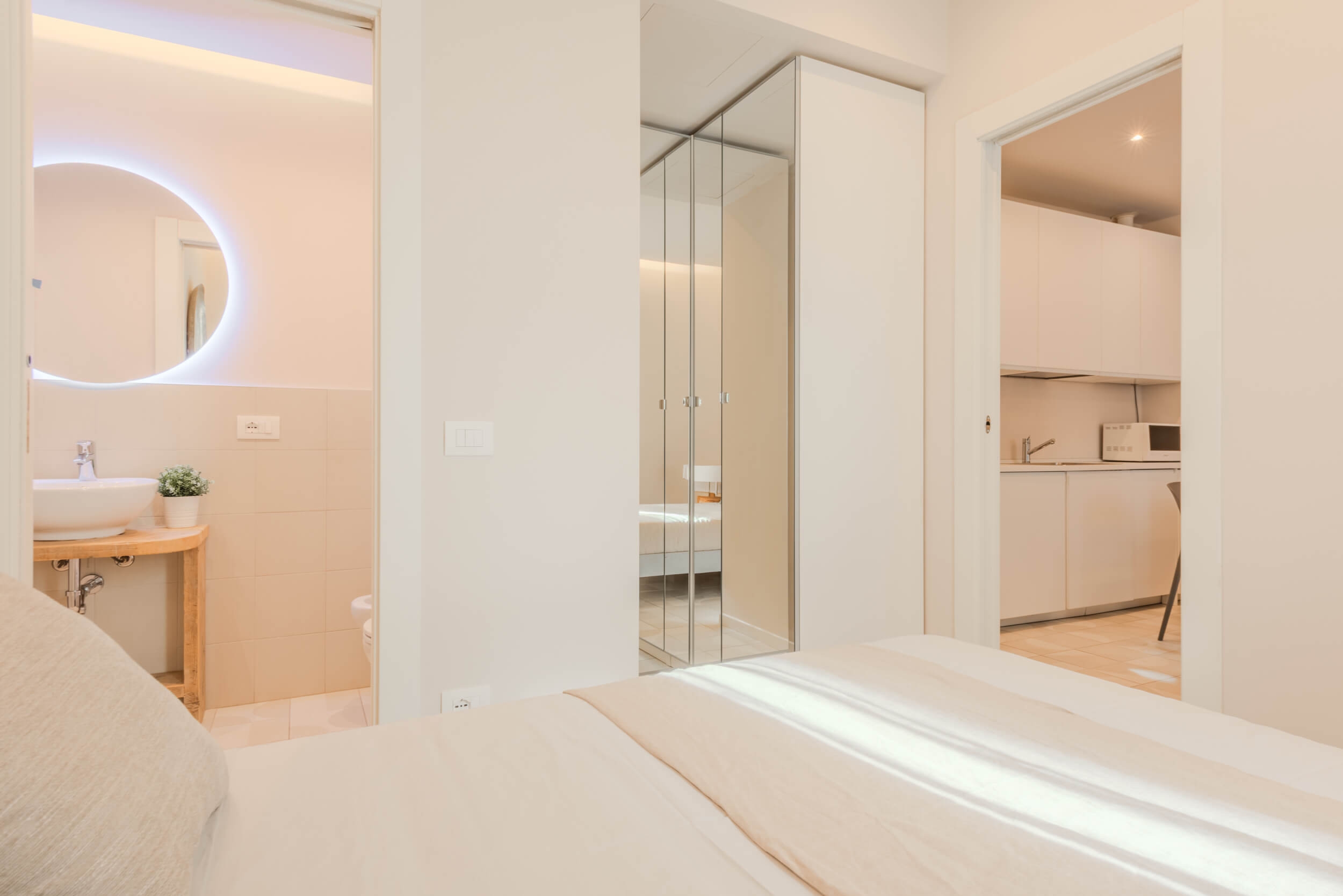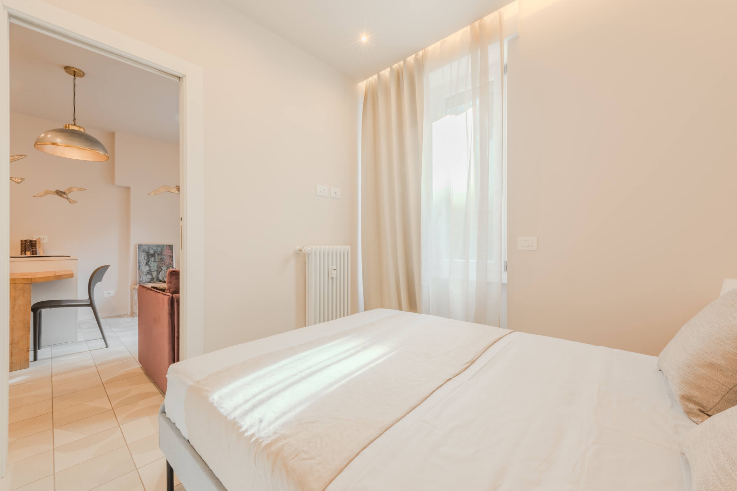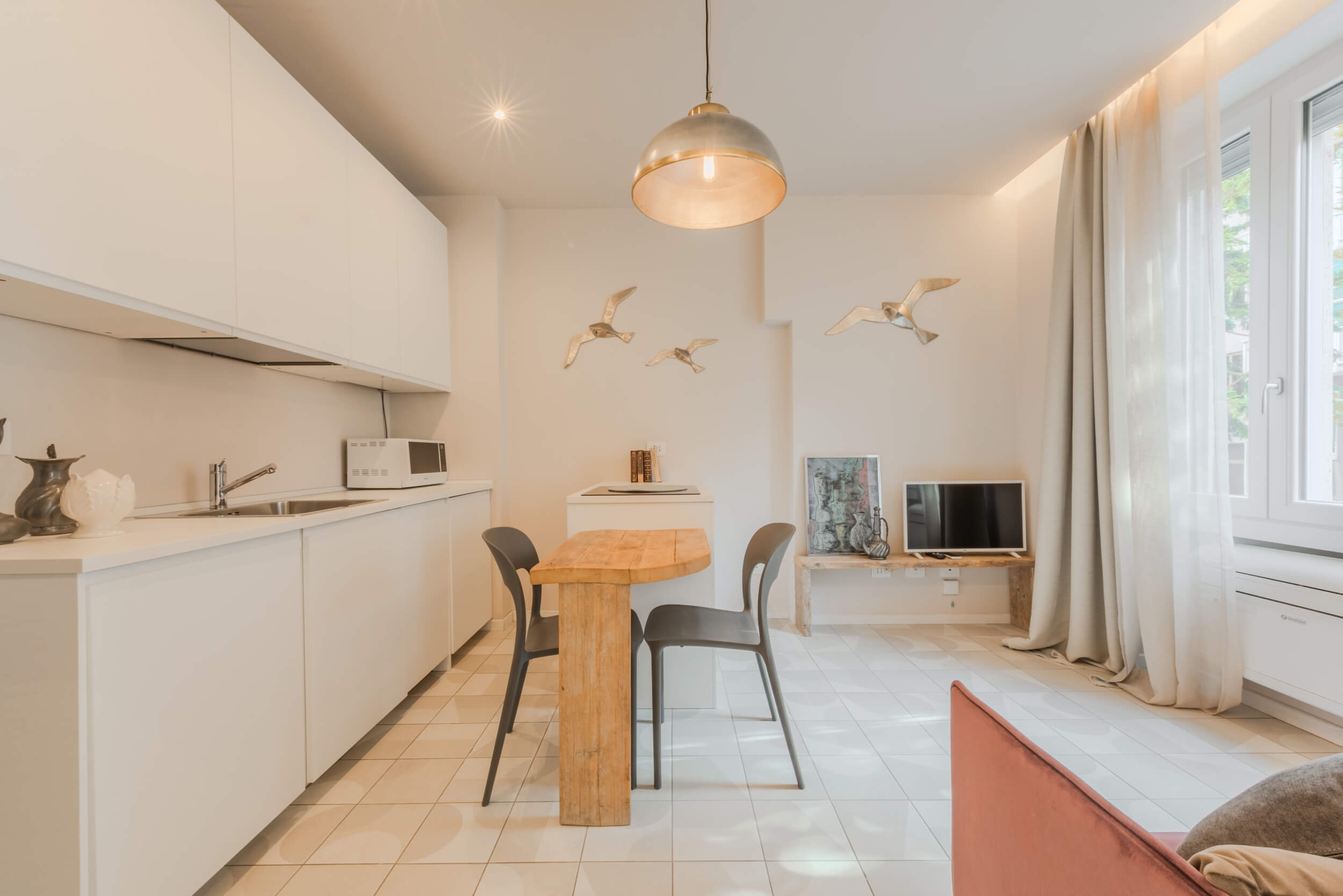 Pensato per offrire il massimo del comfort abitativo con uno stile moderno e funzionale, l’immobile presenta affaccio sul cortile condominiale interno e una luminosità naturale costante. L’ingresso si apre su un living con cucina a vista con isola e divano a letto su misura, ideale per vivere e ricevere in un ambiente accogliente e di tendenza. La camera da letto è dotata di letto matrimoniale e armadio specchiato per ottimizzare gli spazi con eleganza. Il bagno, curato nei dettagli, presenta un ampio box doccia walk-in, lavabo di design, sanitari sospesi.