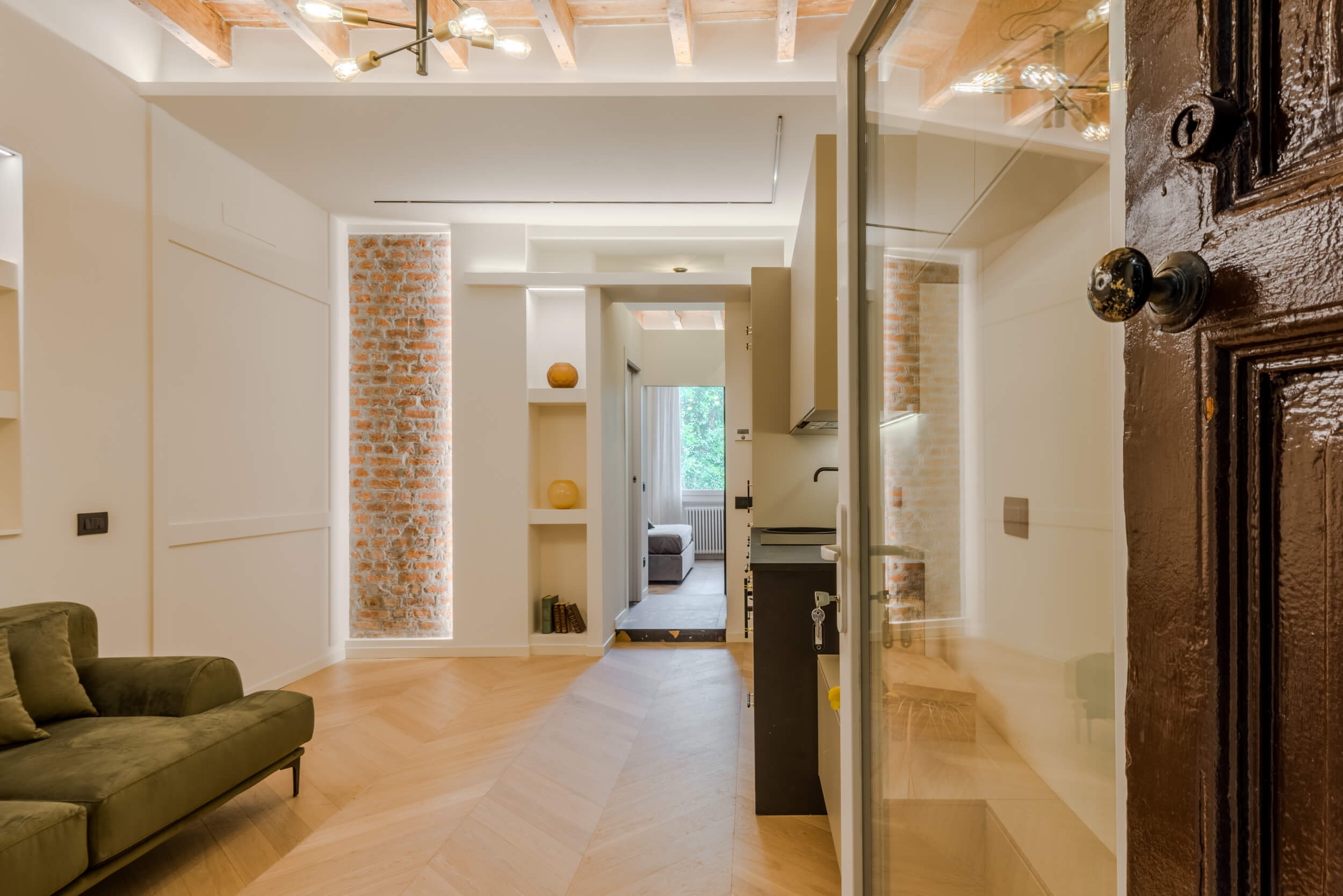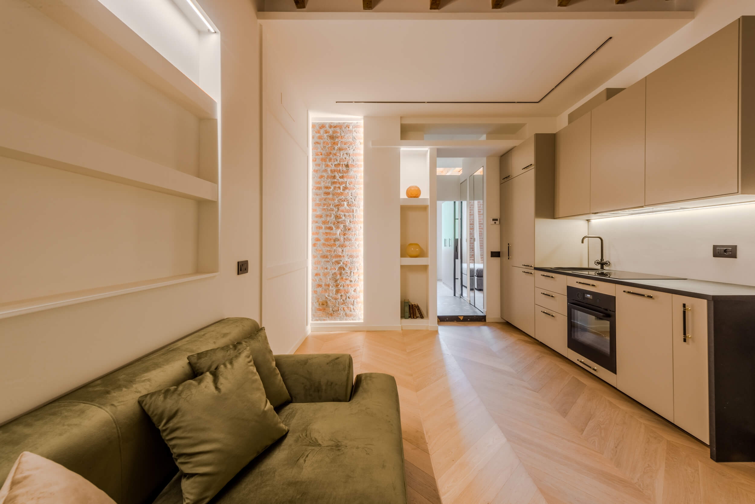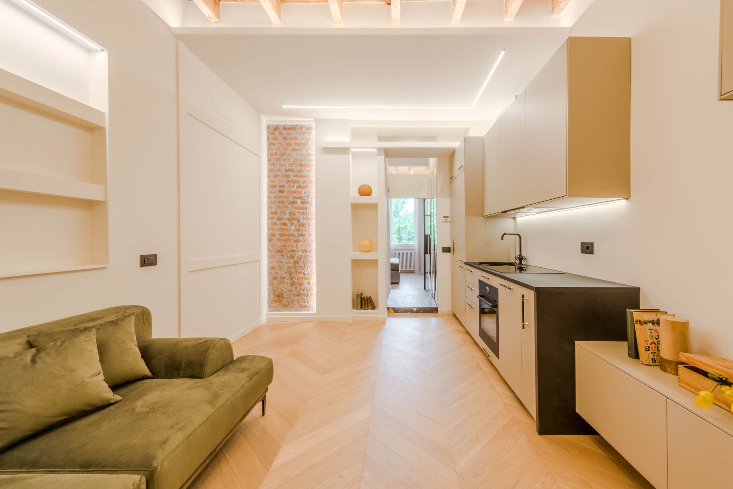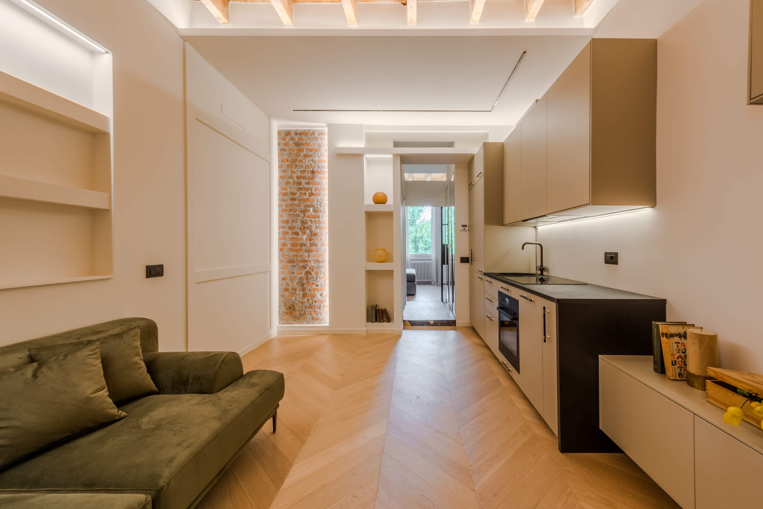 Design e funzionalità si fondono in questa nuova realtà abitativa, pensata per chi cerca un ambiente contemporaneo ispirato all’eleganza storica del quartiere. L’ingresso si apre su un living ricercato e raffinato, dotato di nicchie su misura perfette per ottimizzare gli spazi con stile e una cucina a vista completa di lavastoviglie. La camera da letto è accogliente, silenziosa, luminosa con affaccio sul verde urbano e dotata di letto contenitore artigianale. Il bagno di pregio, è rifinito con rivestimenti in ceramica made in Italy, ampio box doccia walk-in, lavabo moderno e sanitari sospesi. Un comodo ripostiglio ad ante specchiate con spazio per lavatrice completa la proprietà, rendendola ideale per una gestione ordinata degli spazi.