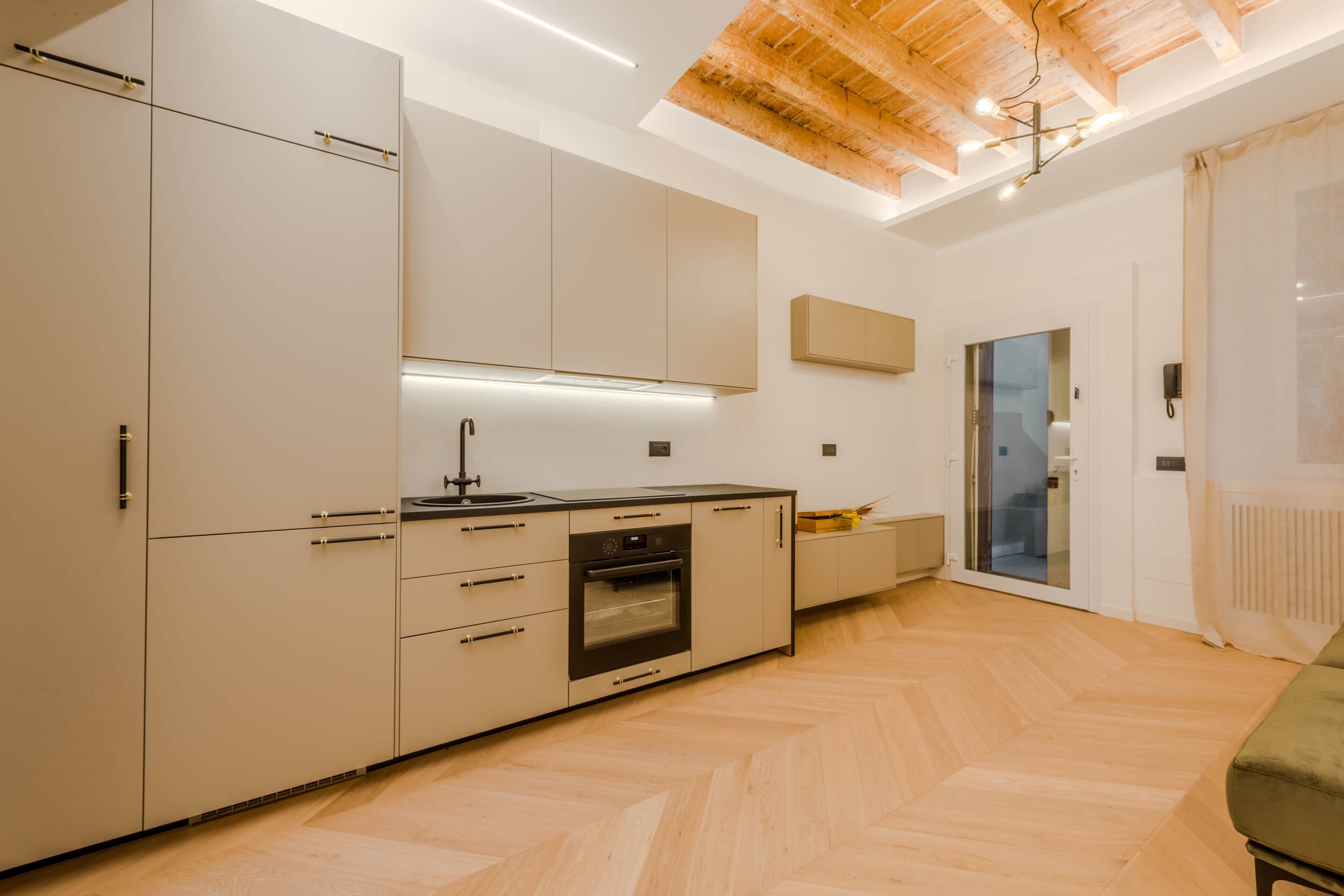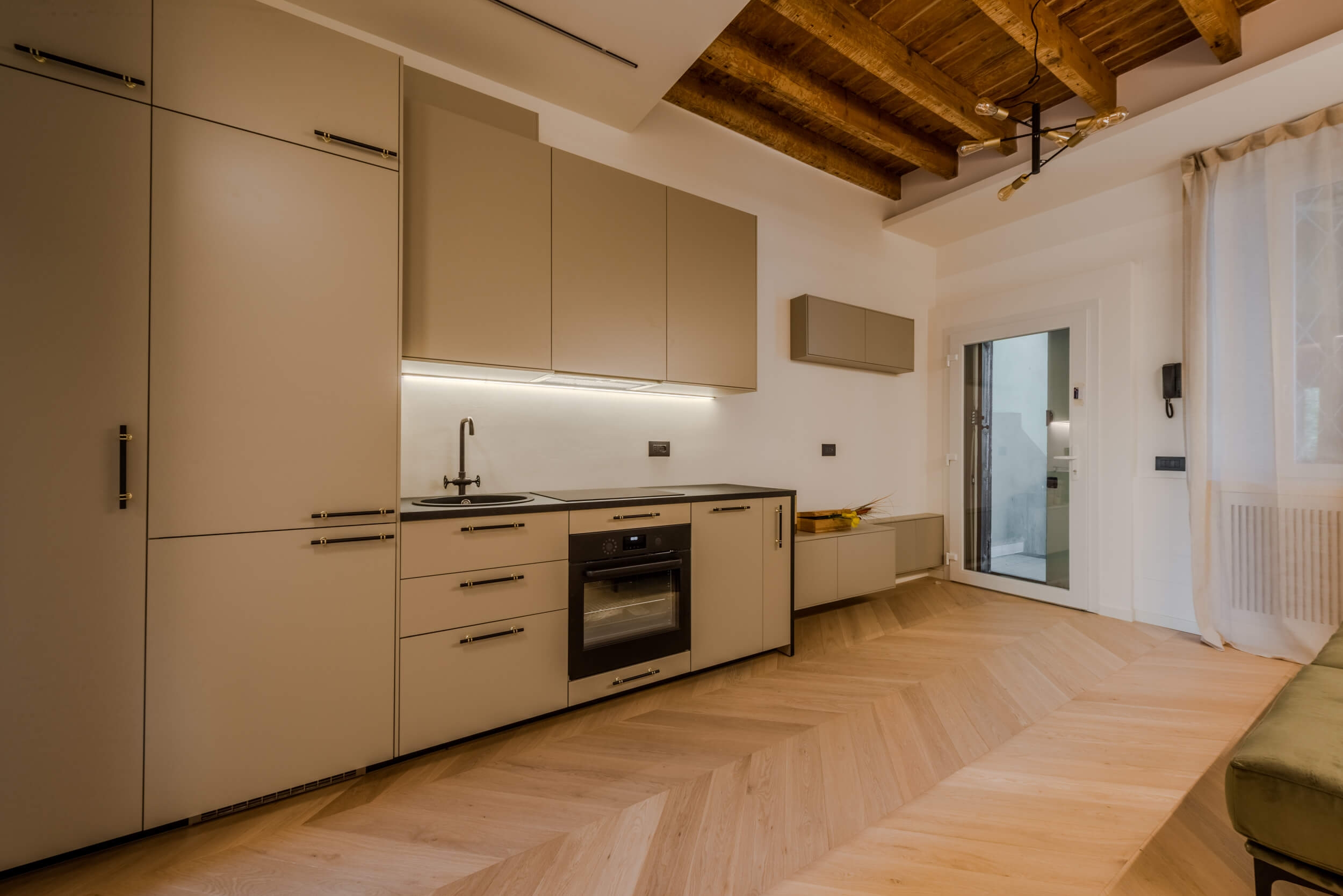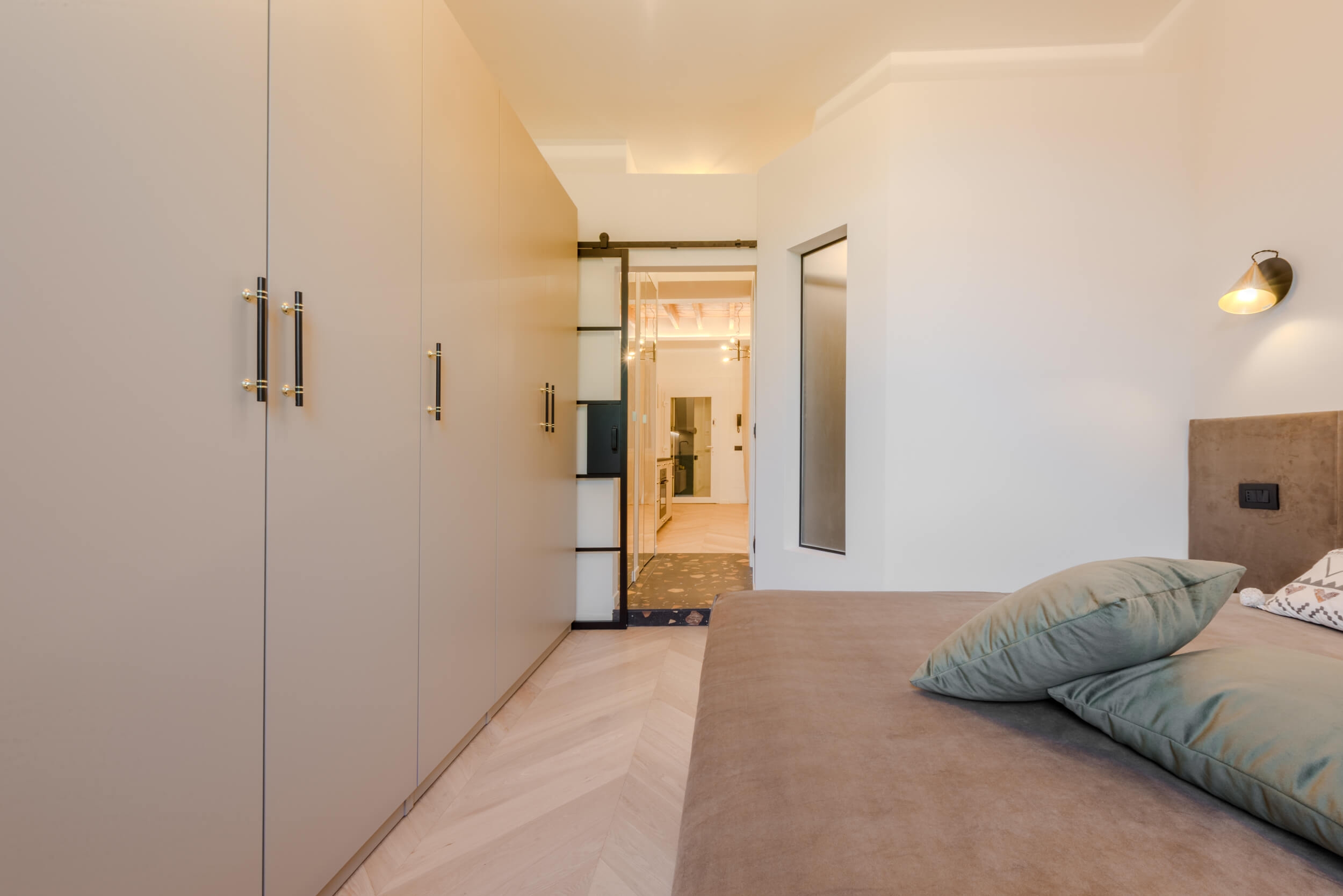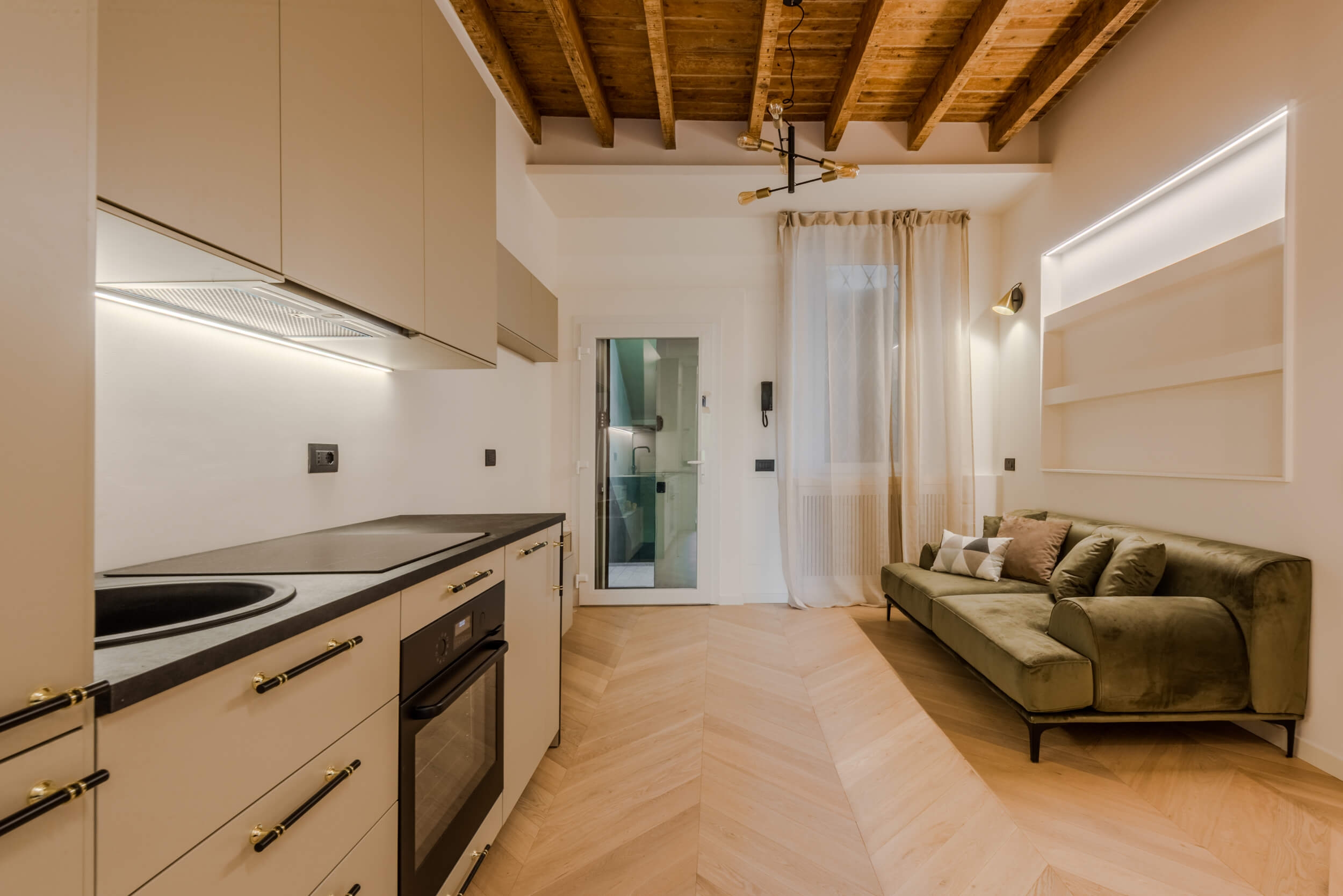 Design e funzionalità si fondono in questa nuova realtà abitativa, pensata per chi cerca un ambiente contemporaneo ispirato all’eleganza storica del quartiere. L’ingresso si apre su un living ricercato e raffinato, dotato di nicchie su misura perfette per ottimizzare gli spazi con stile e una cucina a vista completa di lavastoviglie. La camera da letto è accogliente, silenziosa, luminosa con affaccio sul verde urbano e dotata di letto contenitore artigianale. Il bagno di pregio, è rifinito con rivestimenti in ceramica made in Italy, ampio box doccia walk-in, lavabo moderno e sanitari sospesi. Un comodo ripostiglio ad ante specchiate con spazio per lavatrice completa la proprietà, rendendola ideale per una gestione ordinata degli spazi.