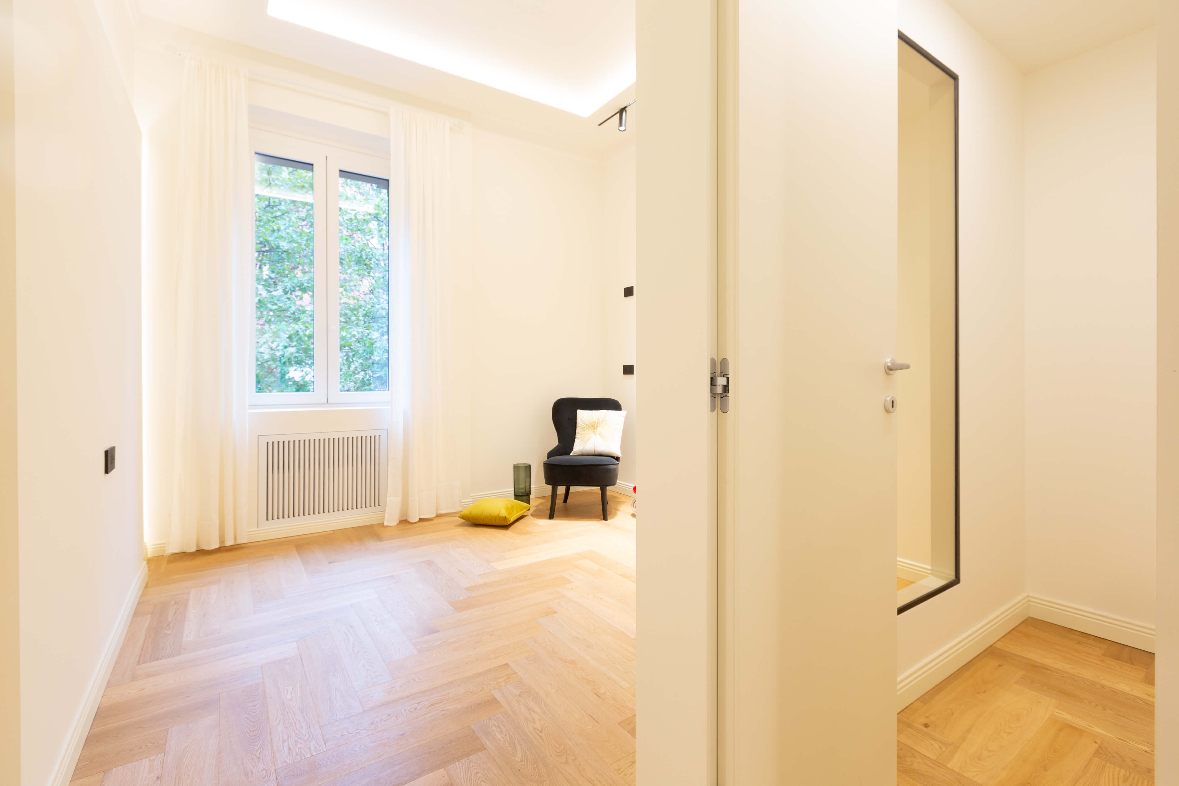 L’appartamento gode di doppia esposizione, interna ed esterna, che garantisce luminosità naturale e un’ottima ventilazione.